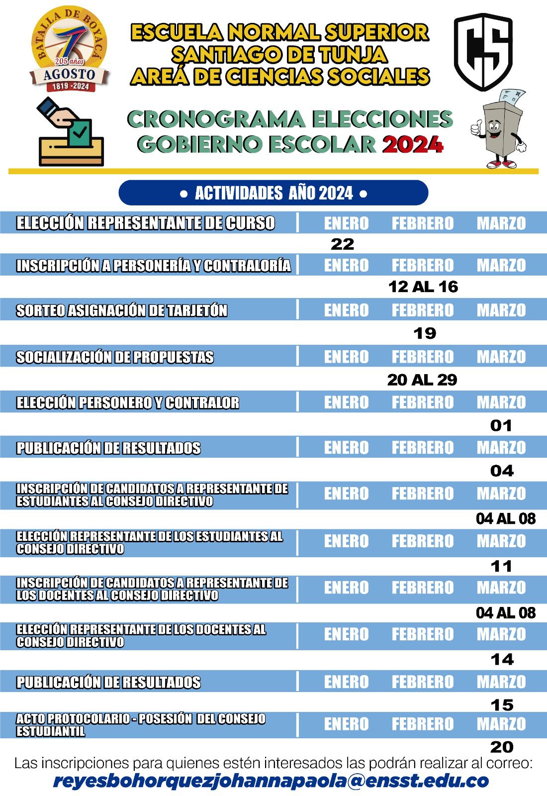 CRONOGRAMA ELECCIONES GOBIERNO ESCOLAR 2024